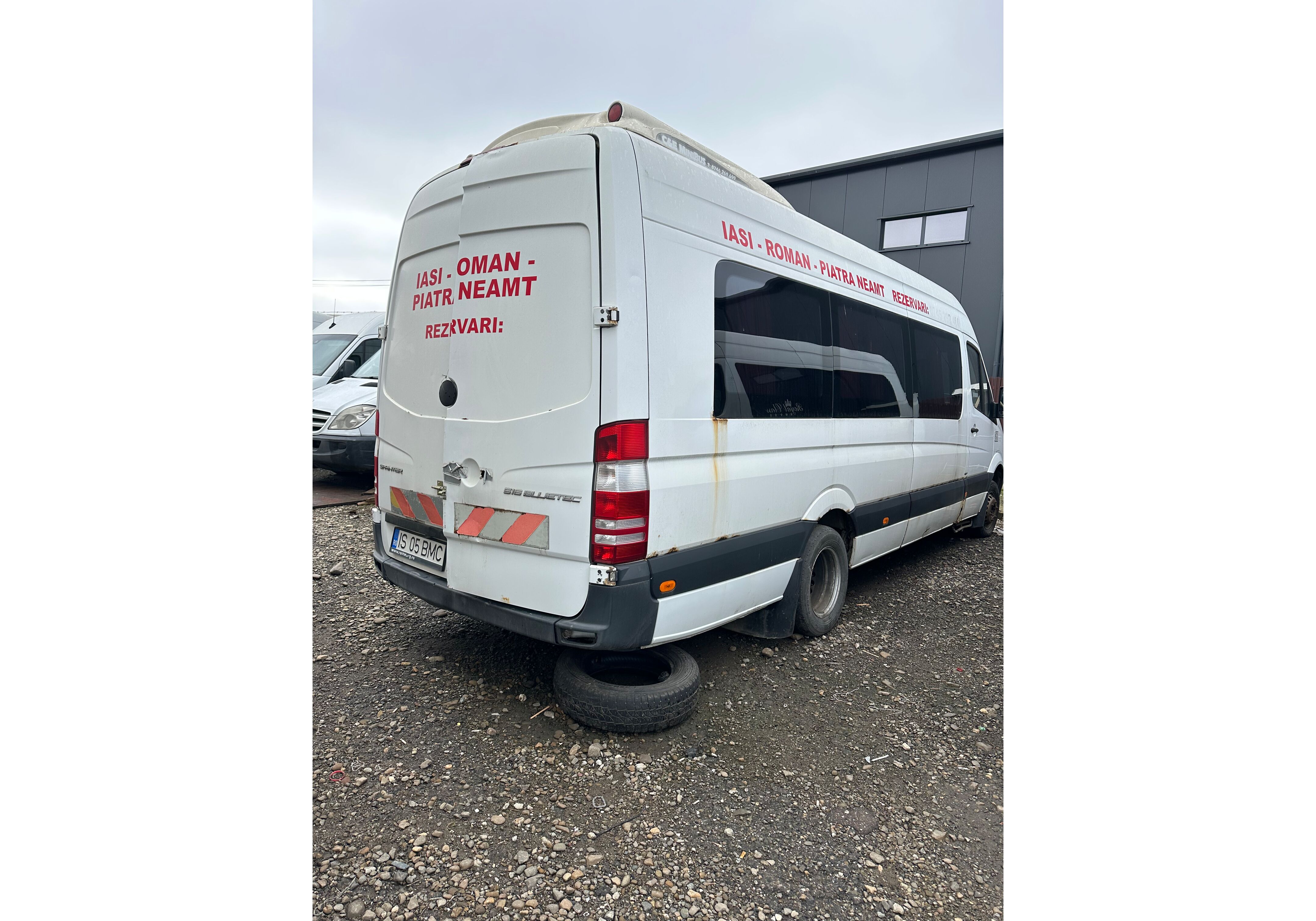 Microbuz M2; nr. inmatriculare: IS-05-BMC; Caroseria: cu standard; Marca: MERCEDES-BENZ; tip/varianta /versiune /denumire comerciala: 906BB50/CEM525/SPRINTER 516CDI; an fabricatie: 2015; norma de poluare: euro 6; nr. identificare: WDB906657FP107823; masa proprie (kg): 3353; masa max. autorizata (kg): 5000; nr. locuri: 20; dimensiunie de gabarit (Lxlxh) (mm): 7345/1993/2860; cilindree (cmc): 2143; putere maxima (KW/ CP):1120KW/163CP; culoare: alb