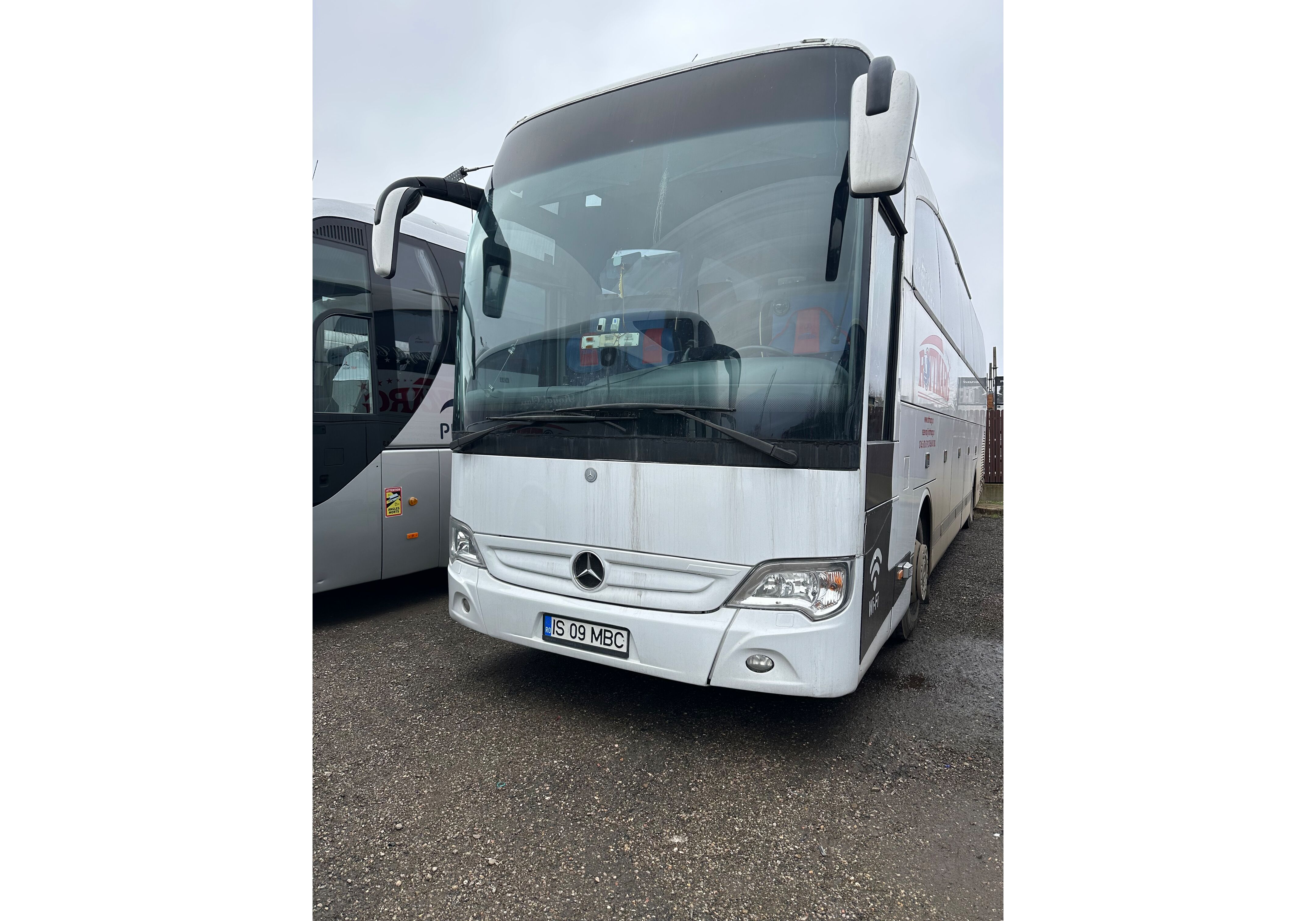 Autobuz M3; nr. inmatriculare: IS-09-MBC; caroseria: ca fara etaj; marca: MERCEDES-BENZ; tip/varianta /versiune /denumire comerciala: TRAVEGO 15SHD; an fabricatie: 2006; norma de poluare: euro 23; nr. identificare: NMB63201013241539; masa proprie (kg): 13954; masa max. autorizata (kg): 18000; nr. locuri: 50; dimensiunie de gabarit (Lxlxh) (mm): 12000/2550/4000; motor tip:OM457LA.III/6; serie motor: fara serie; cilindree (cmc): 11967; putere maxima (KW/ CP):310KW/421CP; sursa de energie: MOTORINA; nr. axe:2; tractiune: spate; culoare: alb